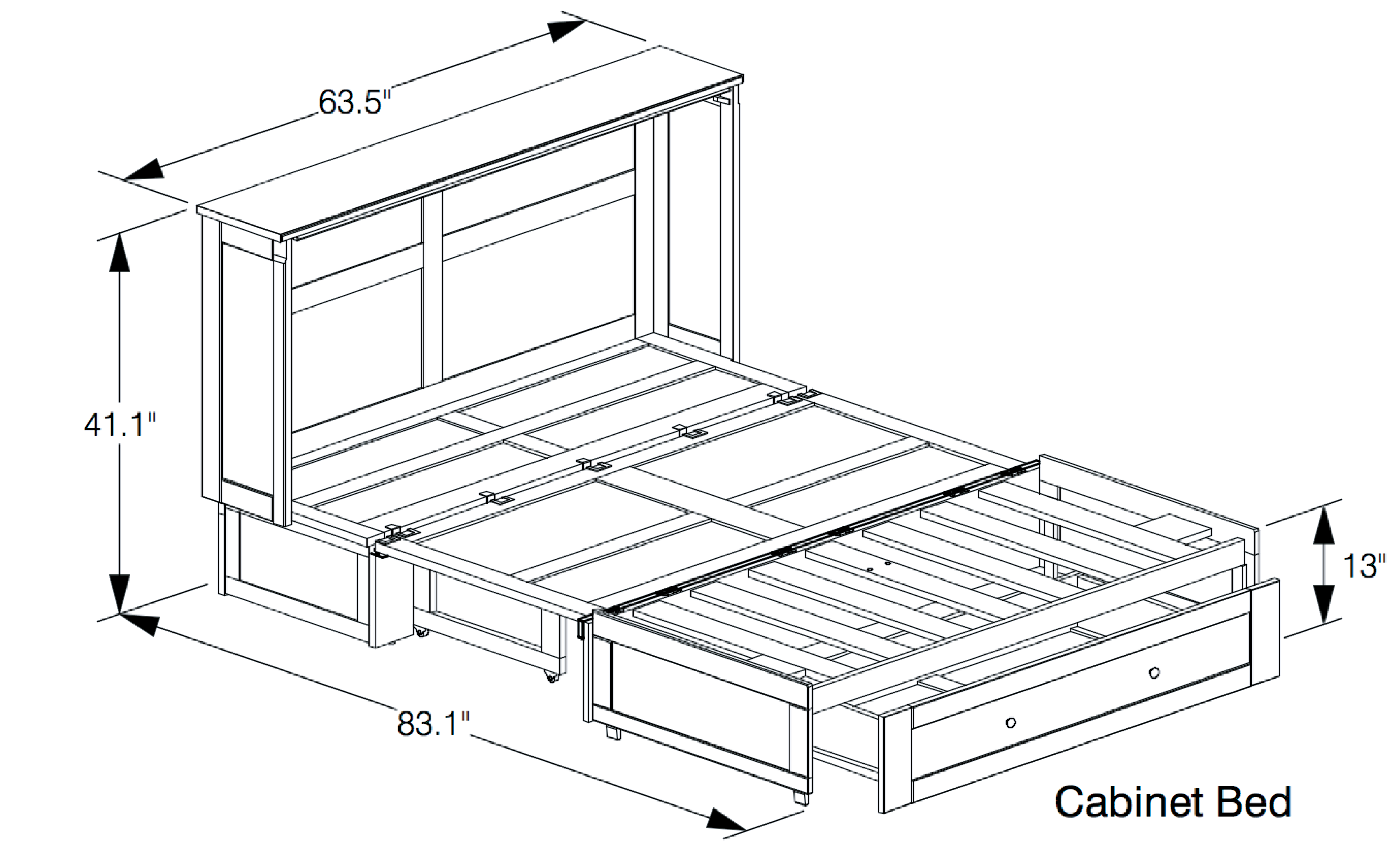 For even the tightest spaces, the Clover Cabinet Bed serves as a stylish and compact alternative to the traditional “wall-mounted” Murphy Bed. This little showstopper will fit in almost any nook or cranny, taking up less than 10 square feet of floor space when folded up! Utilize the wall space above and around it to display pictures, TV, etc. Convert from a beautiful piece of cabinetry to a comfortable bed for guests in less than a minute!