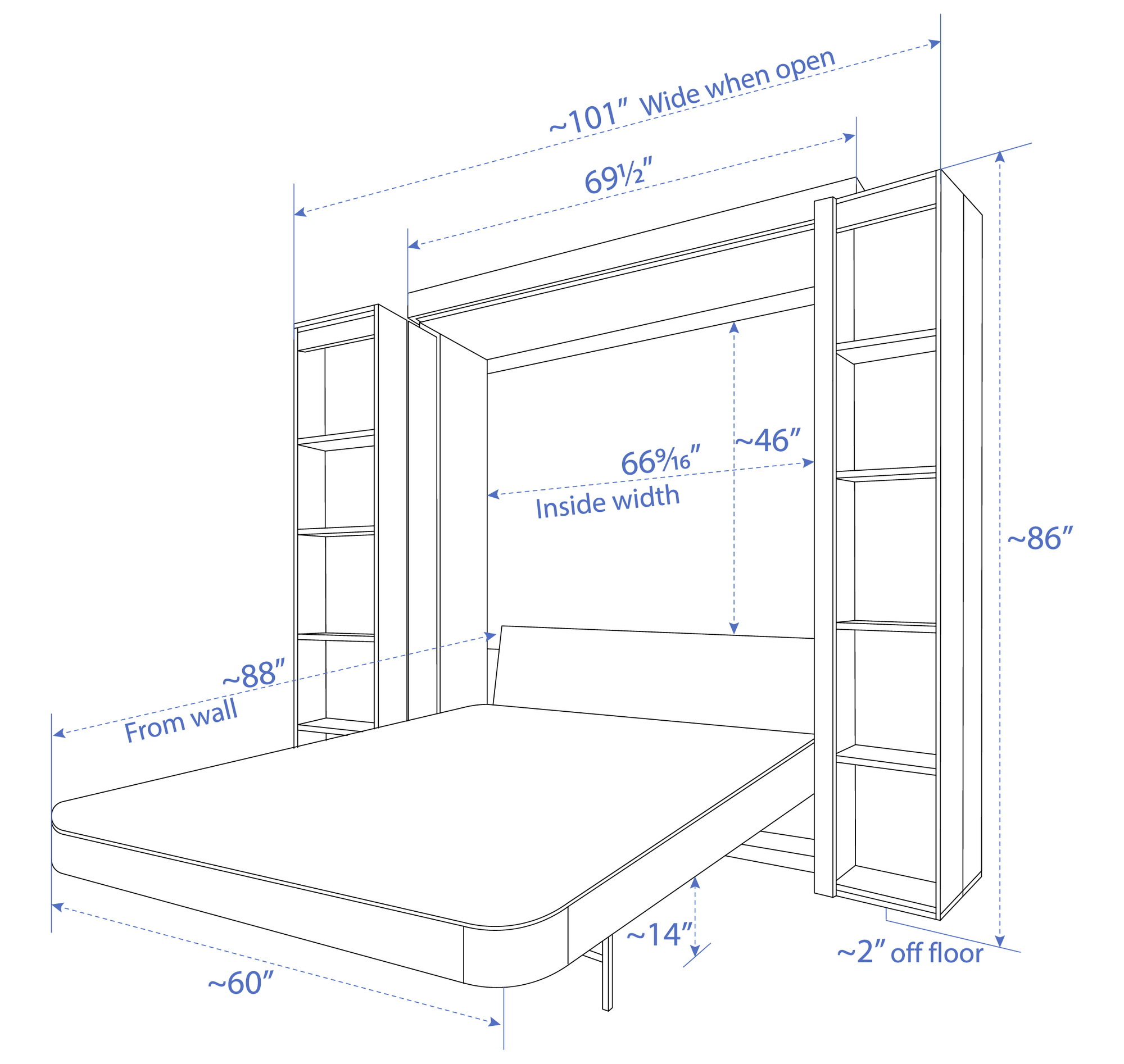 Queen: 69" w x 90" h x 27"d (101" w when open)