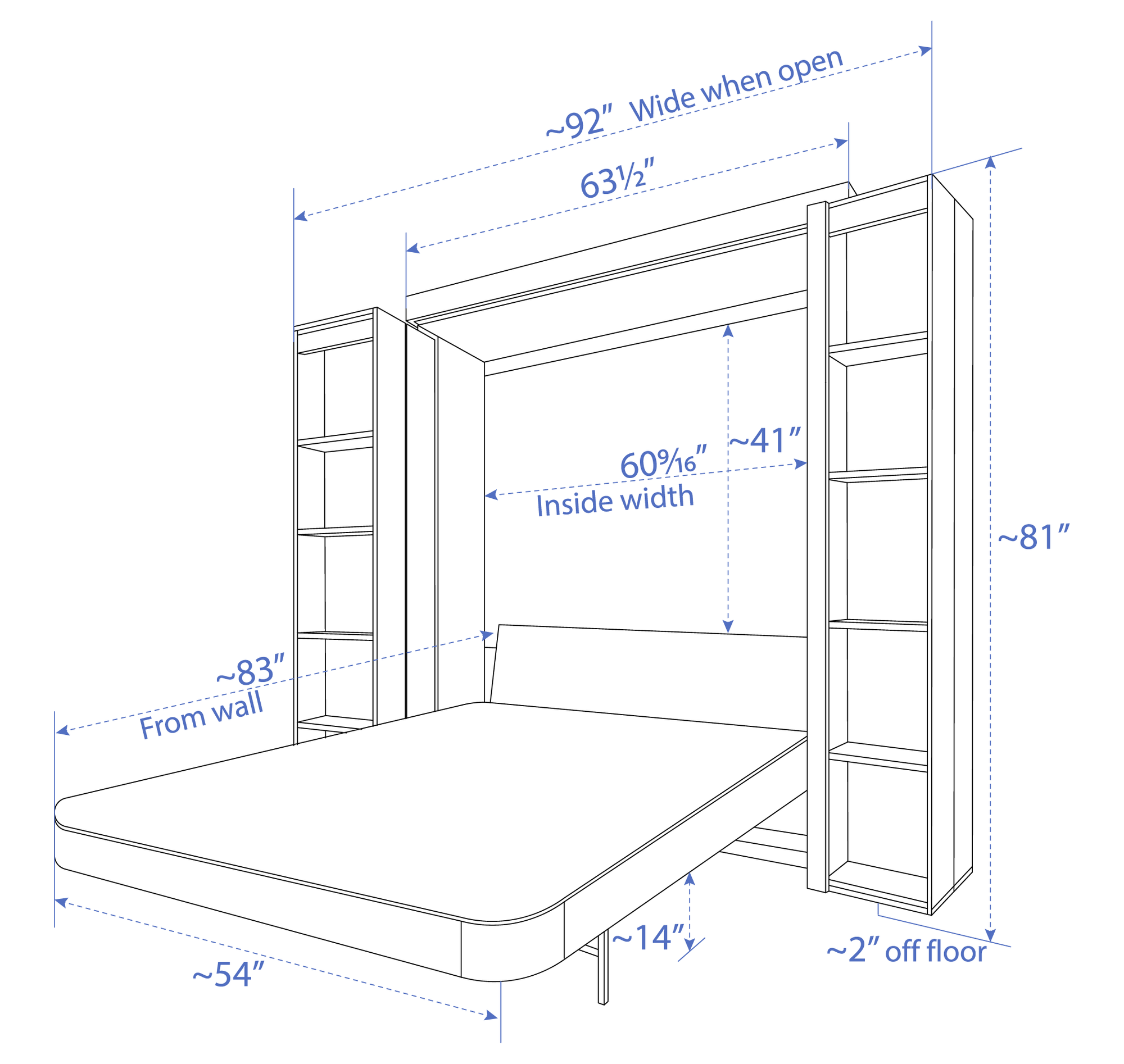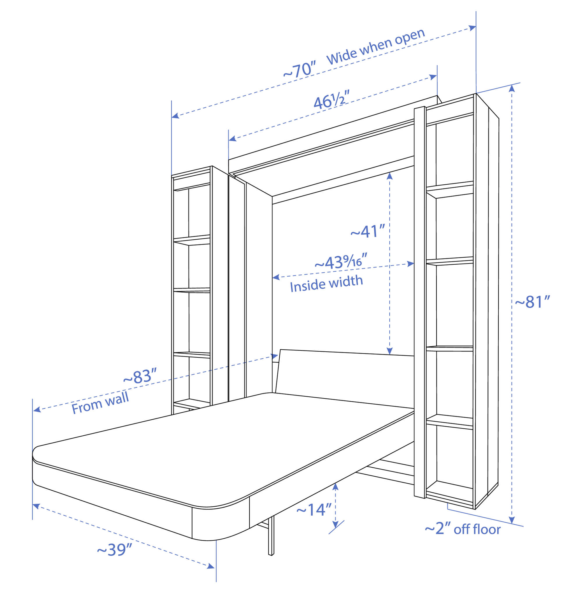 Full/Double: 63" w x 85" h x 27" d (92" w when open)