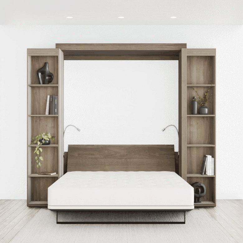 Our Boaz Bifold Bookcase Murphy Bed System includes everything you need to transform any space into a dual-purpose guest room, complete with a library.