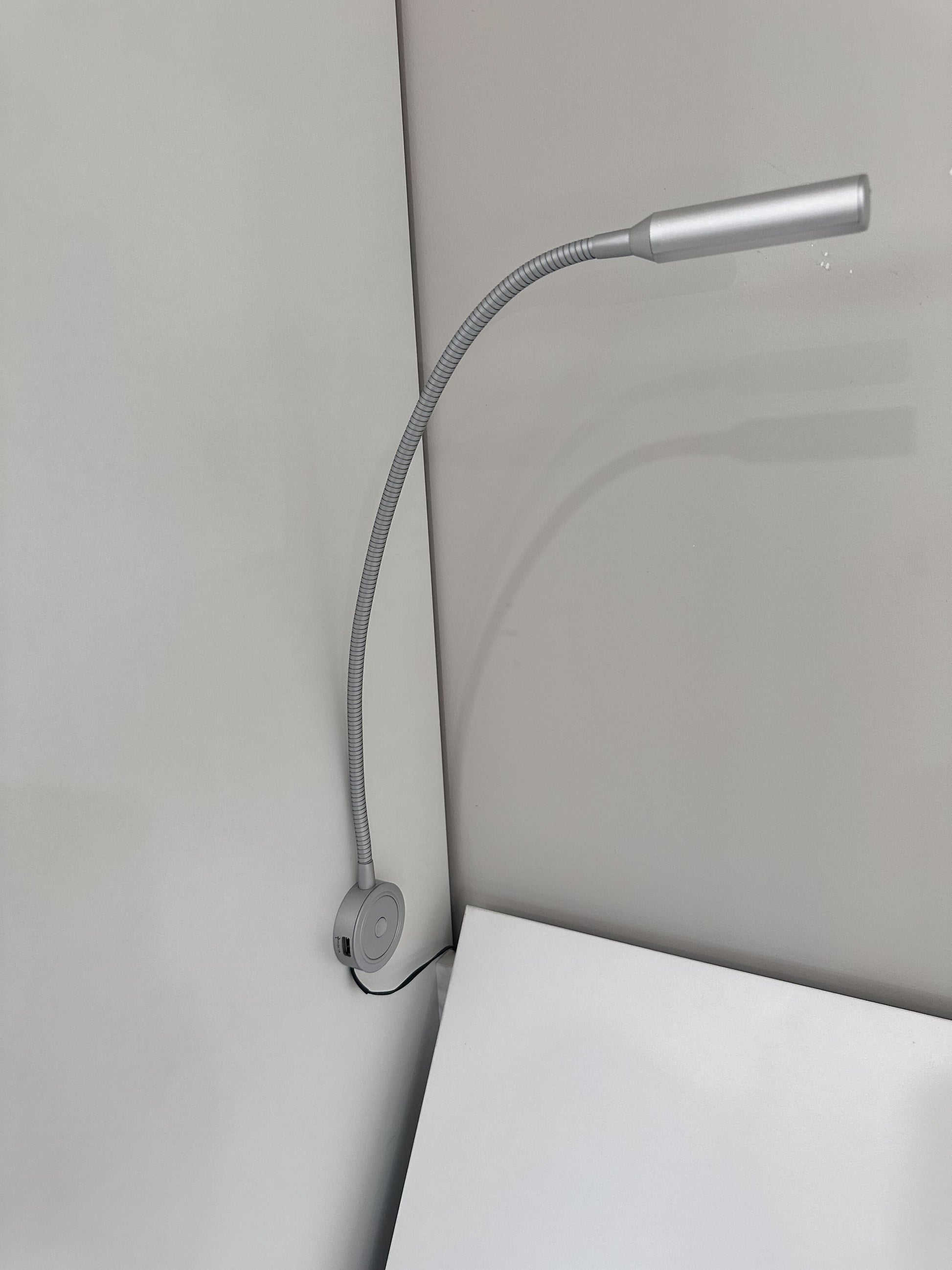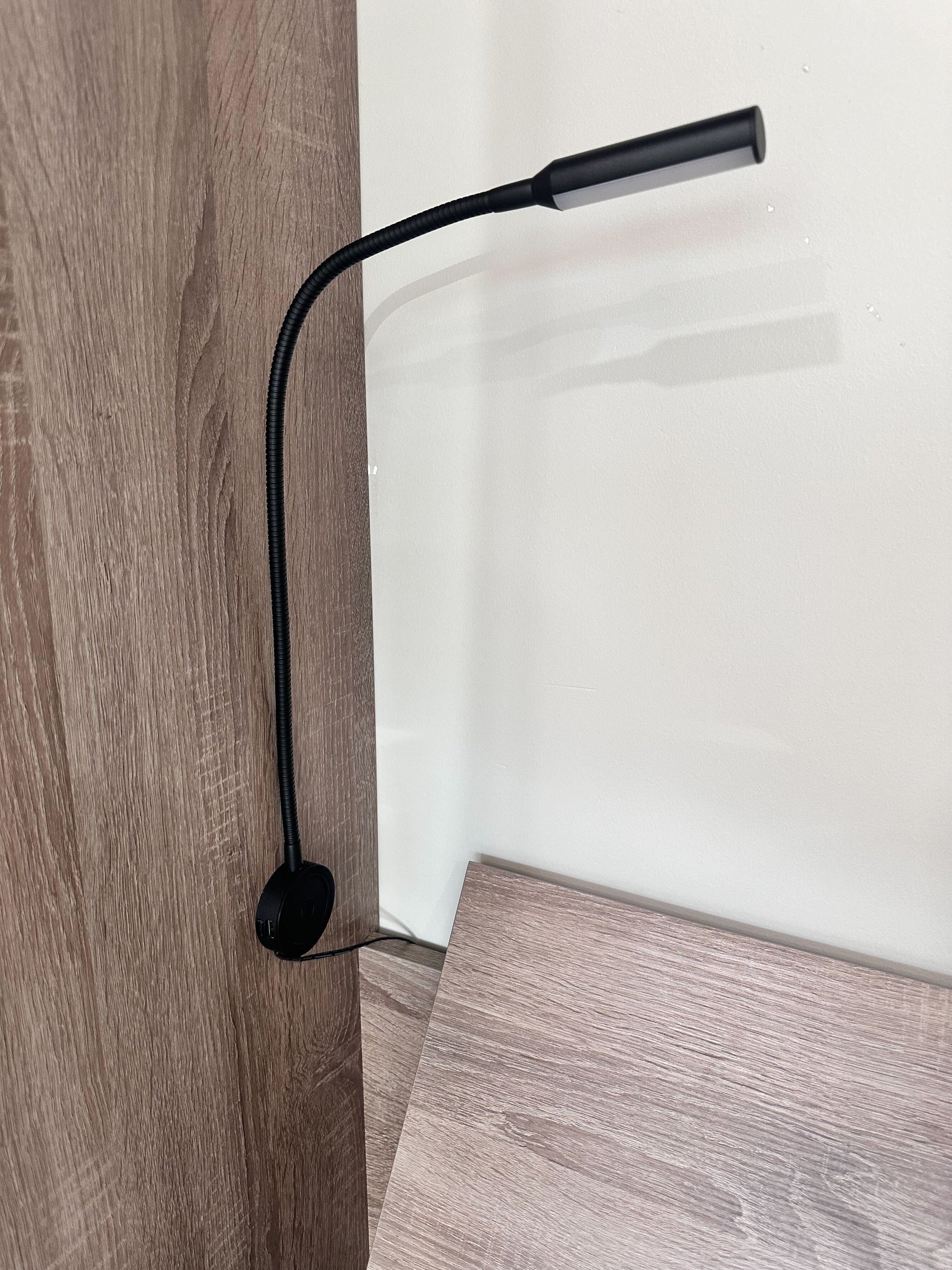 This flexible reading light provides more than just targeted spot lighting. It also provides a USB charging station for a phone or tablet. A touch dimmer is integrated into the base.