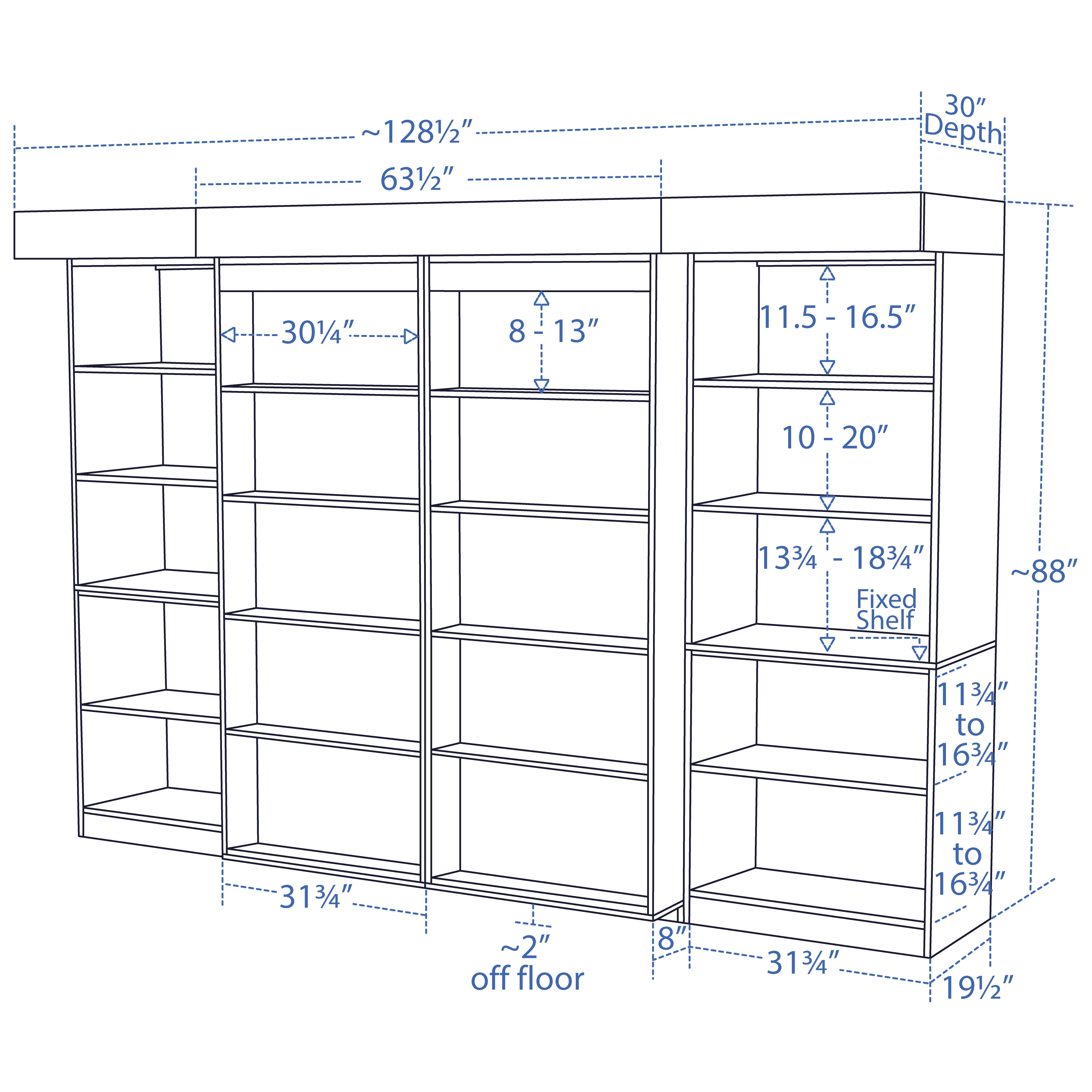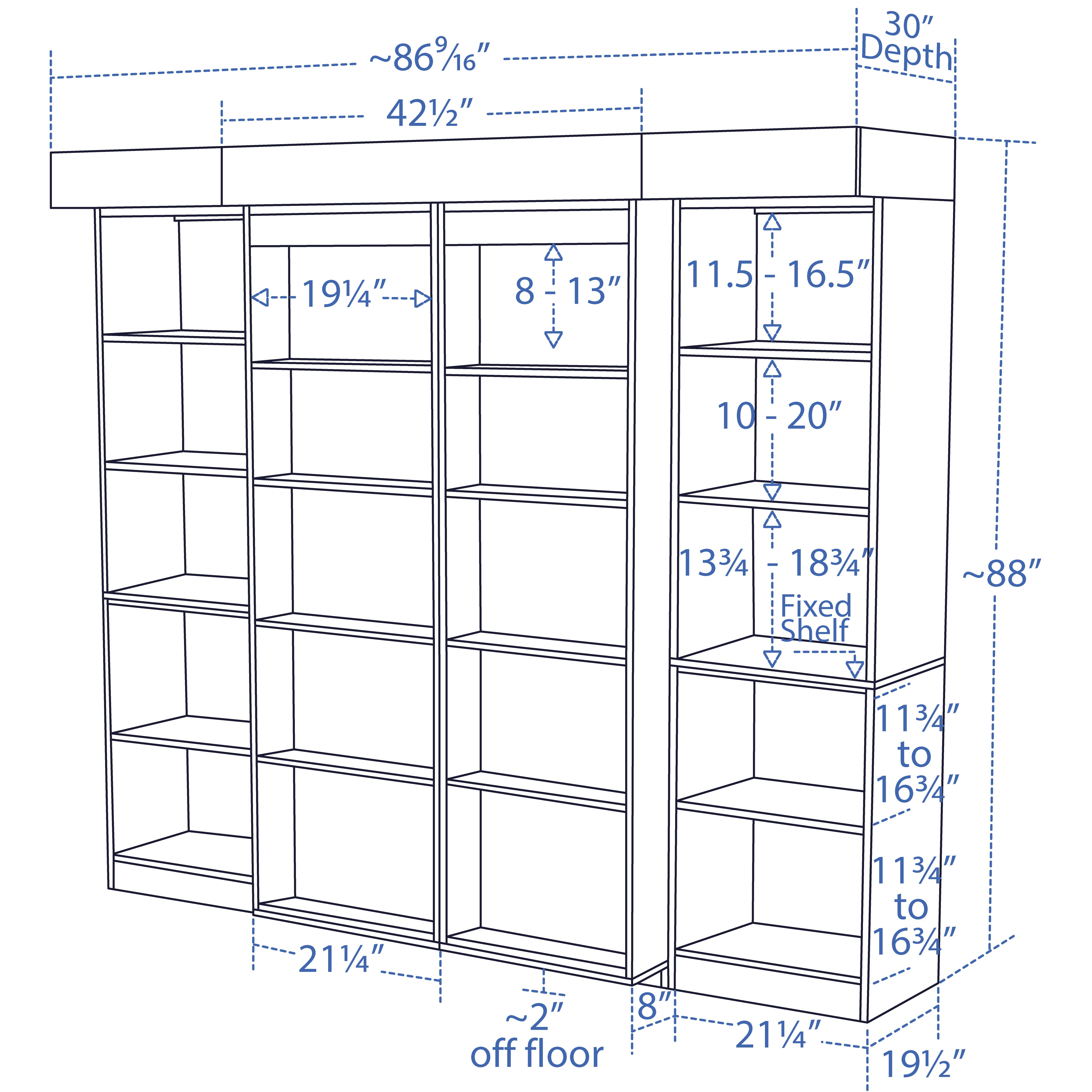87" w x 88" h x 30" d