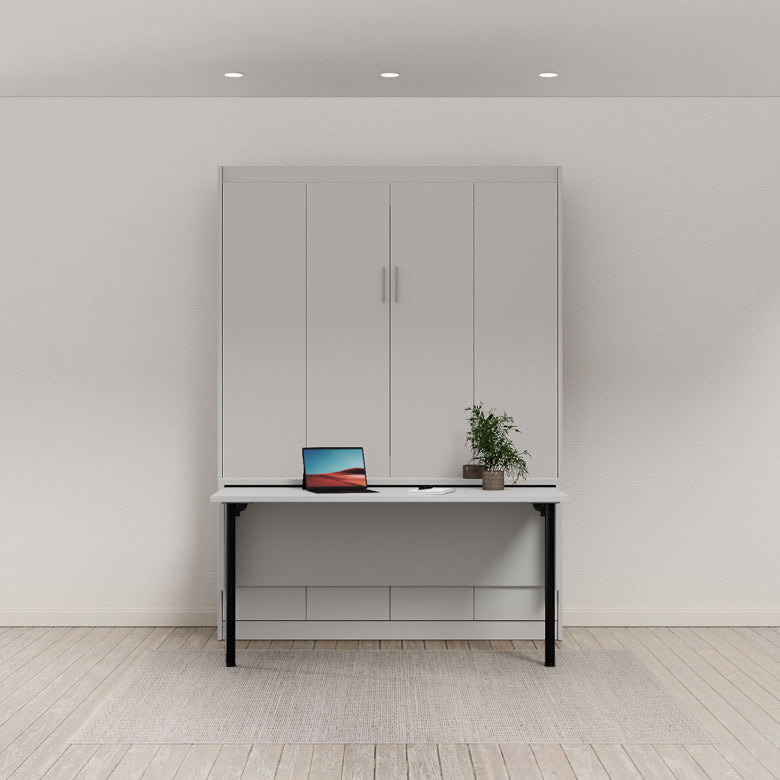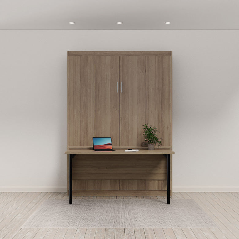 Always talked about a Murphy bed for guest room, so we could use the space when bed not needed. We picked the Queen-size model with desk (when bed not out.) LOVE it. Had company 2 days after the install & they felt it was a really comfortable bed. Been using the desk when the bed is packed away. The room is also our grandchildren’s play space. Perfect set up. Sales staff was really great & helped us with our choices, installation staff also really great, made it a tailor-made placement, established an extension cord in the outlet behind the bed & through the opening at the baseboard. Demonstrated pulling out & replacing bed, & desk set up. Best added feature to the home. Made a small room multi-functional! Workmanship was excellent (made by the company), as well as secure install. Have had visitors ask who seller is, so hope we have helped this company with more sales. They deserve it.